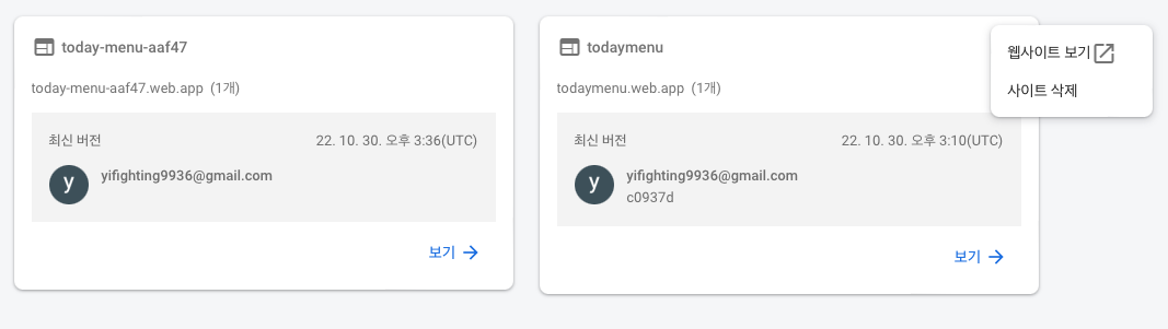 site 주소가 맘에 안 들어서 한 개를 추가로 만들고 기존에 있던 페이지는 지우려고 해봤다.!