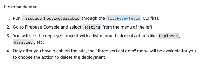https://stackoverflow.com/questions/42591099/how-do-i-remove-a-hosted-site-from-firebase