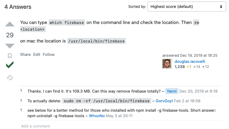 I install Firebase CLI (firebase-tools) https://github.com/firebase/firebase-tools by this code: curl -sL firebase.tools | bash How to uninstall it totally?