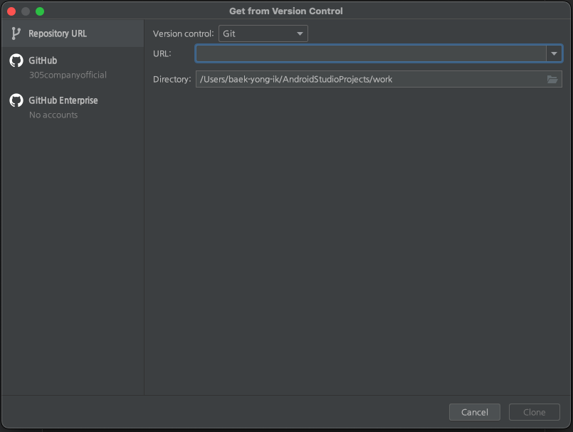 library 수정을 위해 주소 복사 후 android 에서 get from version control 에서