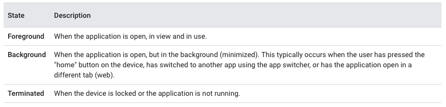 Device state에 따라, 들어오는 메시지는 다르게 handle 된다. 이들 시나리오들을 이해하고 어떻게 FCM을 자신의 FCM에 integrate하는지 알기 위해, 먼저 장치가 있을 수 있는 다양한 상태를 설정하는 것이 중요합니다.