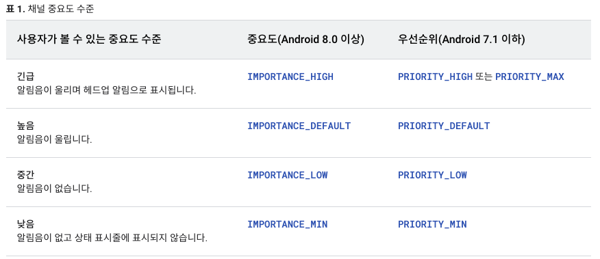 channel 중요도에 따라서 notification 동작이 달라짐! 여러개의 채널 만들어서 확인 필요
