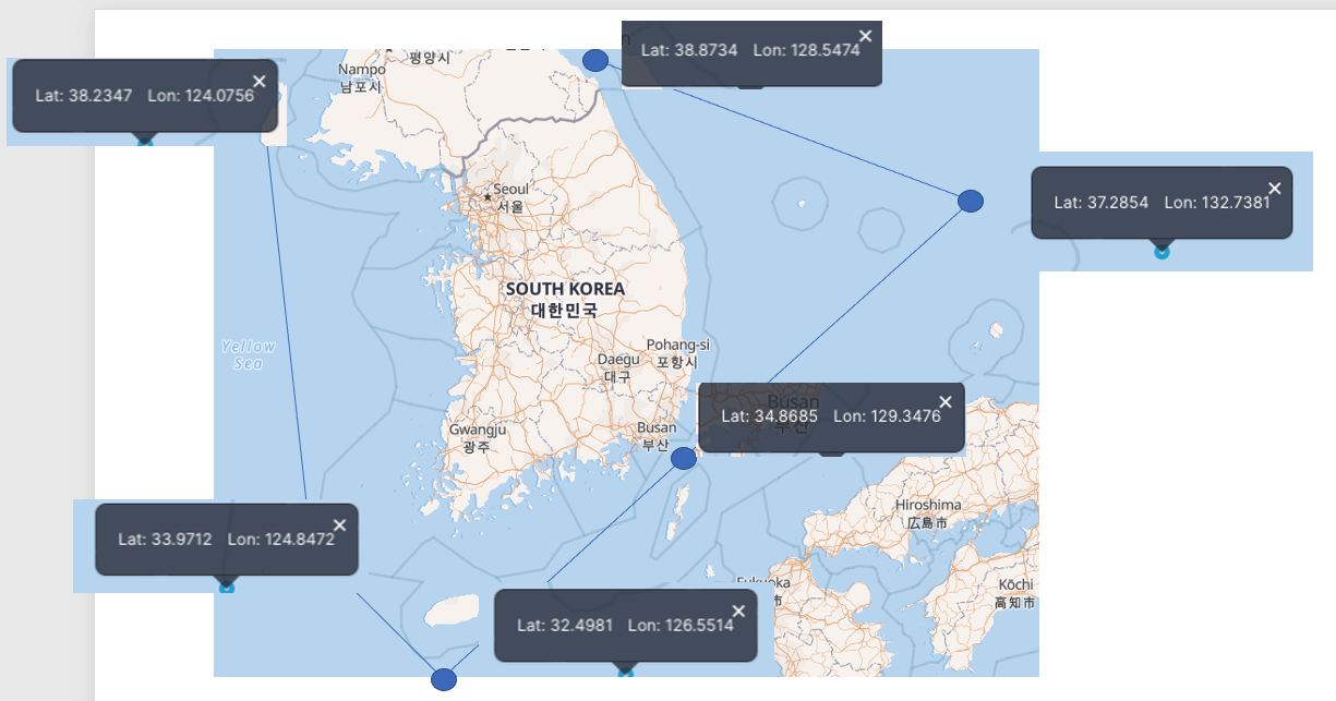 그러면, 일단 한국에 해당하는 폴리곤을 그려서 내가 있는 GPS위치가 폴리곤 안에 있는지 확인해야한다.