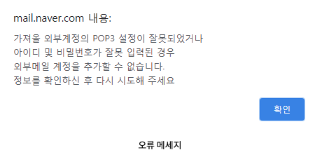 네이버 메일로 지메일(gmail) 수신하는 방법 (외부 계정의 POP3 설정이잘못되었습니다 오류 메세지