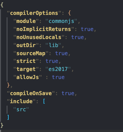 complier option이라고 했으니까 compilerOptions라고 되어있는 곳에 넣어주자!