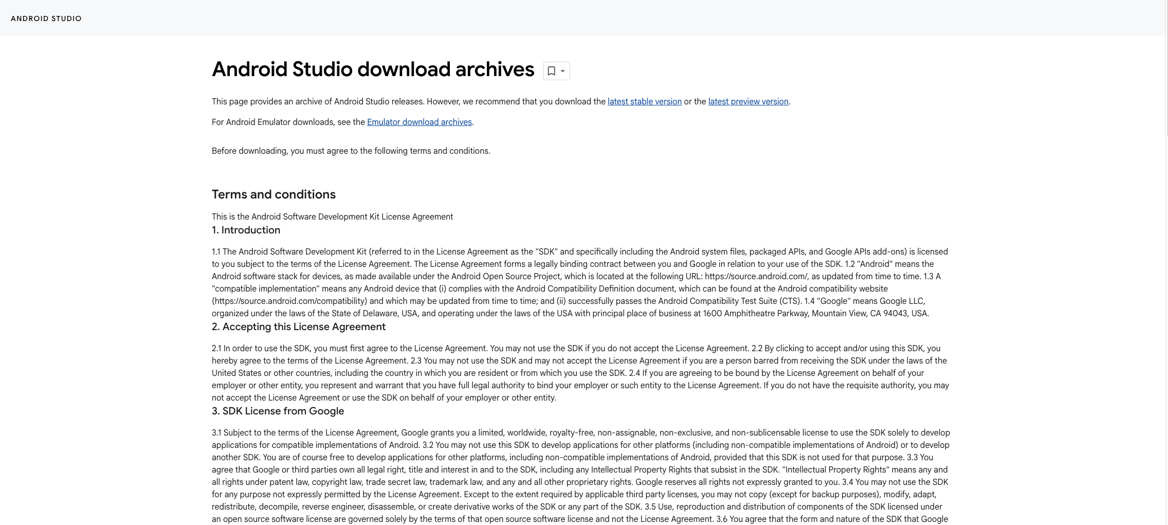 이 페이지에는 Android 스튜디오 출시 관련 다운로드 자료실이 포함되어 있습니다.