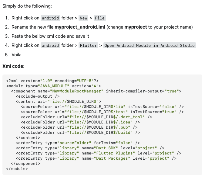Flutter: Open android module in Android Studio is disabled